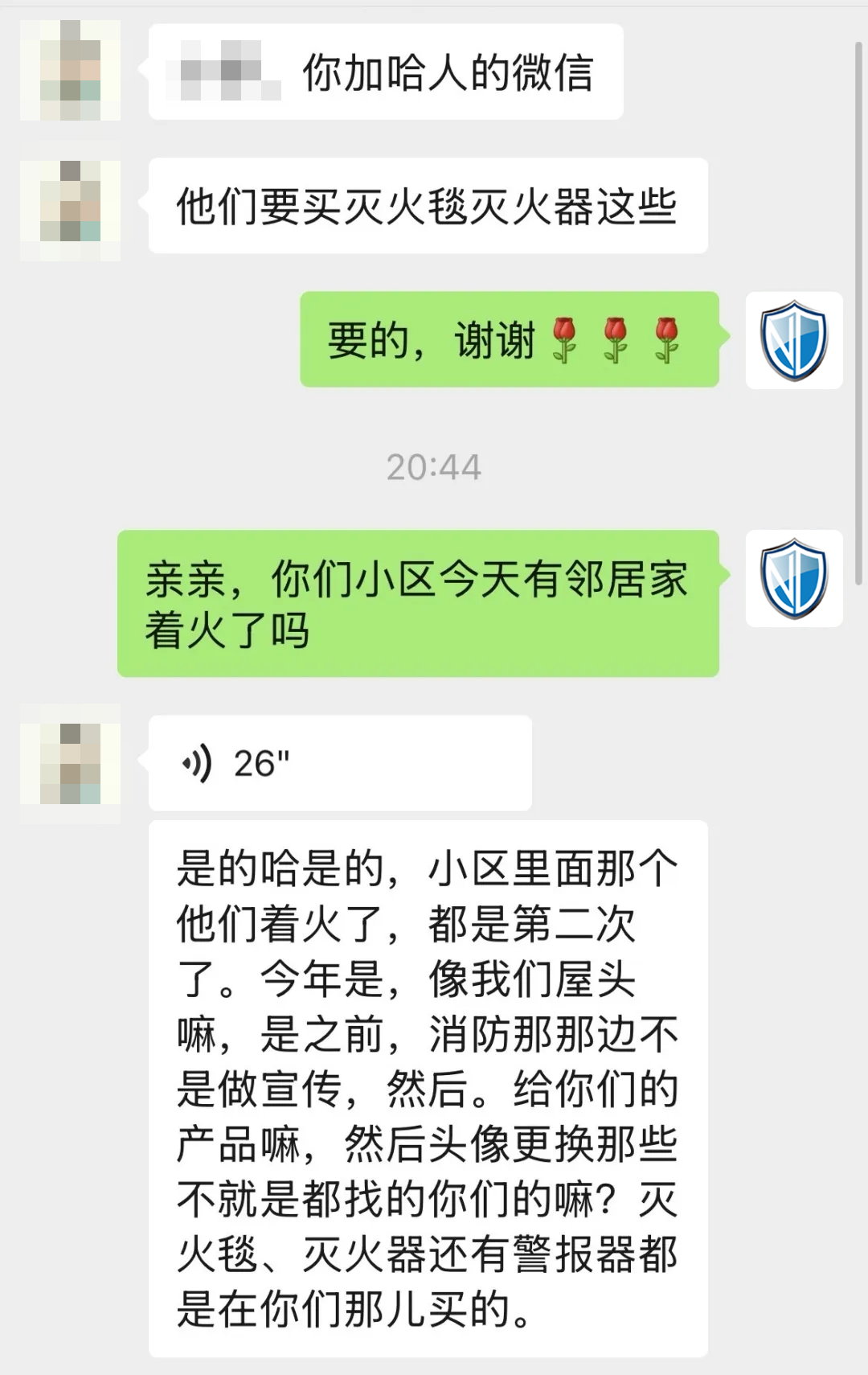 劉女士的分享很快引起了鄰居們的關注。王女士(化名)是第一個聯系安康諾盾客服的:“今年小區都發生兩起火災了,家里還是準備點滅火的器材,萬一發生火災還能用上,聽了劉女士的介紹,立馬下單了一套。”